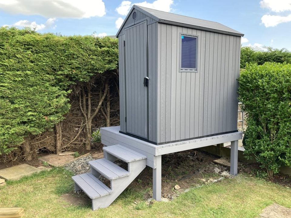 The Darwin shed is a 4x6 shed is constructed from an Evotech composite resin, a new state of the art composite technology that ensures a weatherproof and maintenance-free shed built to last.